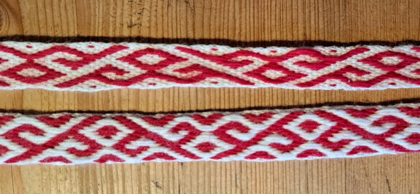 Die gewebten Bänder sind mit einem Webkamm gewebt.